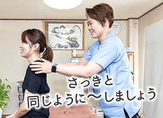 先生は腰だけでなく、元からあった肩こりも治療してくださり、1回で体が楽になって嬉しいです。腰に負担をかけない座り方やグッズのアドバイスも頂きました。今は週1回通って腰の痛みが出ないようにしています。